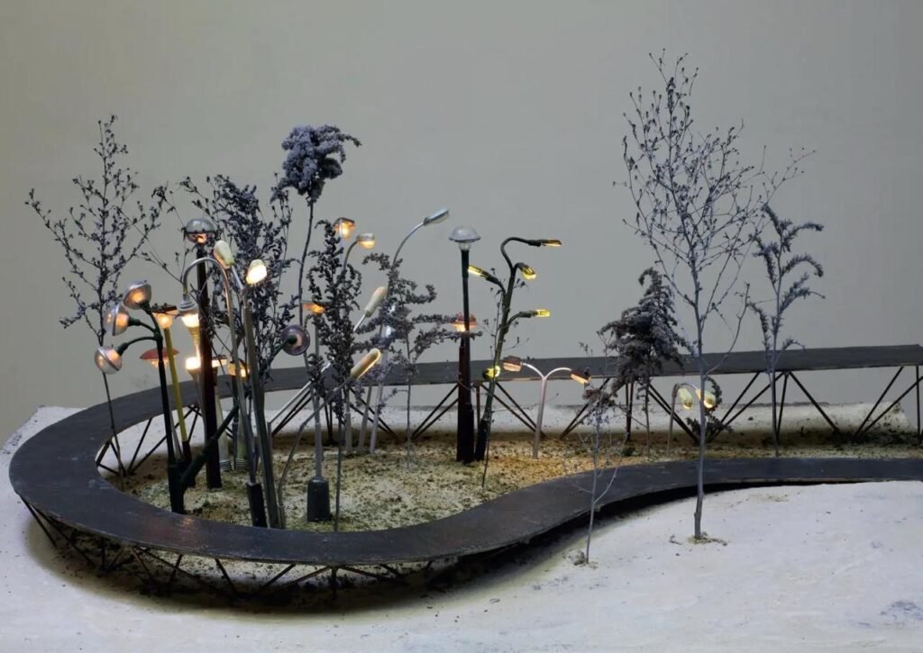 “Like in a botanical garden, [the lamps] will have labels indicating where [they are] coming from, with the original photos from the original placement, [and] our sketches,” shares Kintera. The installation will serve a dual purpose: the utilitarian function of lighting the path for evening commuters and the figurative goal of brightening the surrounding urban landscape.